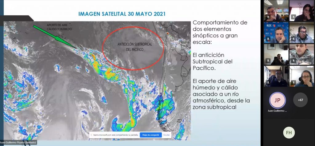 Esta jornada, vía telemática, se realizó una Mesa Técnica encabezada por el Director Nacional de ONEMI, Ricardo Toro, y que contó con la participación de los organismos que componen el Sistema Nacional de Protección Civil. En la ocasión, se analizó la Alerta emitida por la Dirección Meteorológica de Chile (DMC), que establece la presencia de precipitaciones moderadas a fuerte, con Isoterma 0°C alta, entre las regiones de Ñuble y Los Lagos.