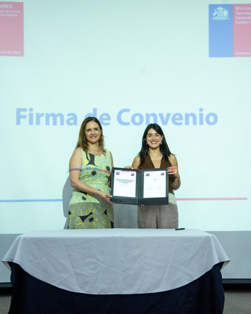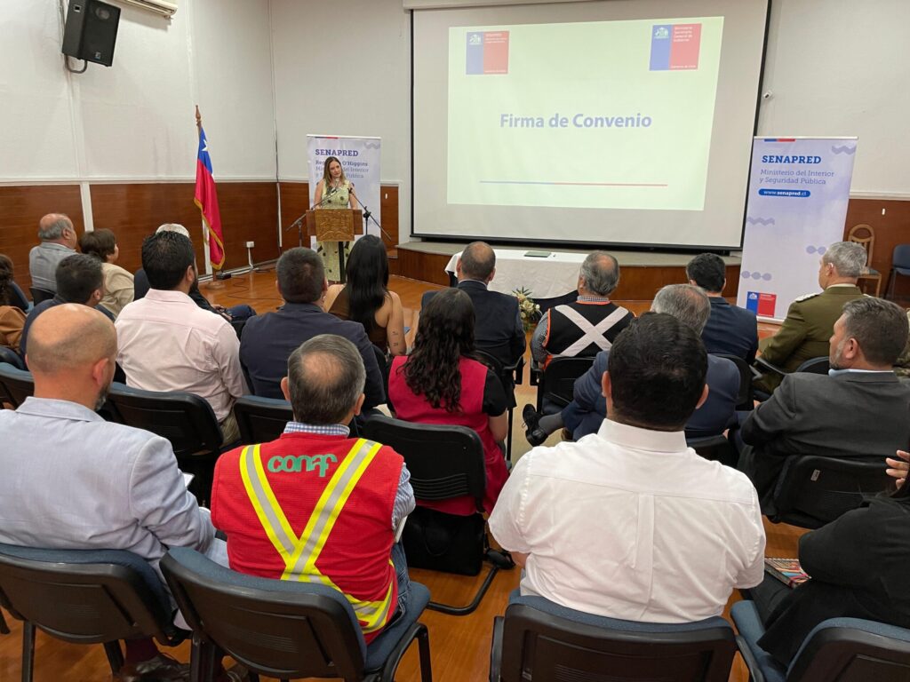 Durante este mediodía en las dependencias del salón O’Higgins en la ciudad de Rancagua, la Subsecretaria de Gobierno, Nicole Cardoch; el Gobernador Regional; Pablo Silva; el Delegado Presidencial Regional de O’Higgins, Fabio López; y la Directora Nacional de SENAPRED, Alicia Cebrián; encabezaron la ceremonia de firma del convenio de colaboración entre Segegob y Senapred, que permitirá impulsar el Programa de Gestión del Riesgo de Desastres en su versión 2025, mediante la Plataforma Portal Único de Fondos Concursables del Estado de Chile (https://fondos.gob.cl/).