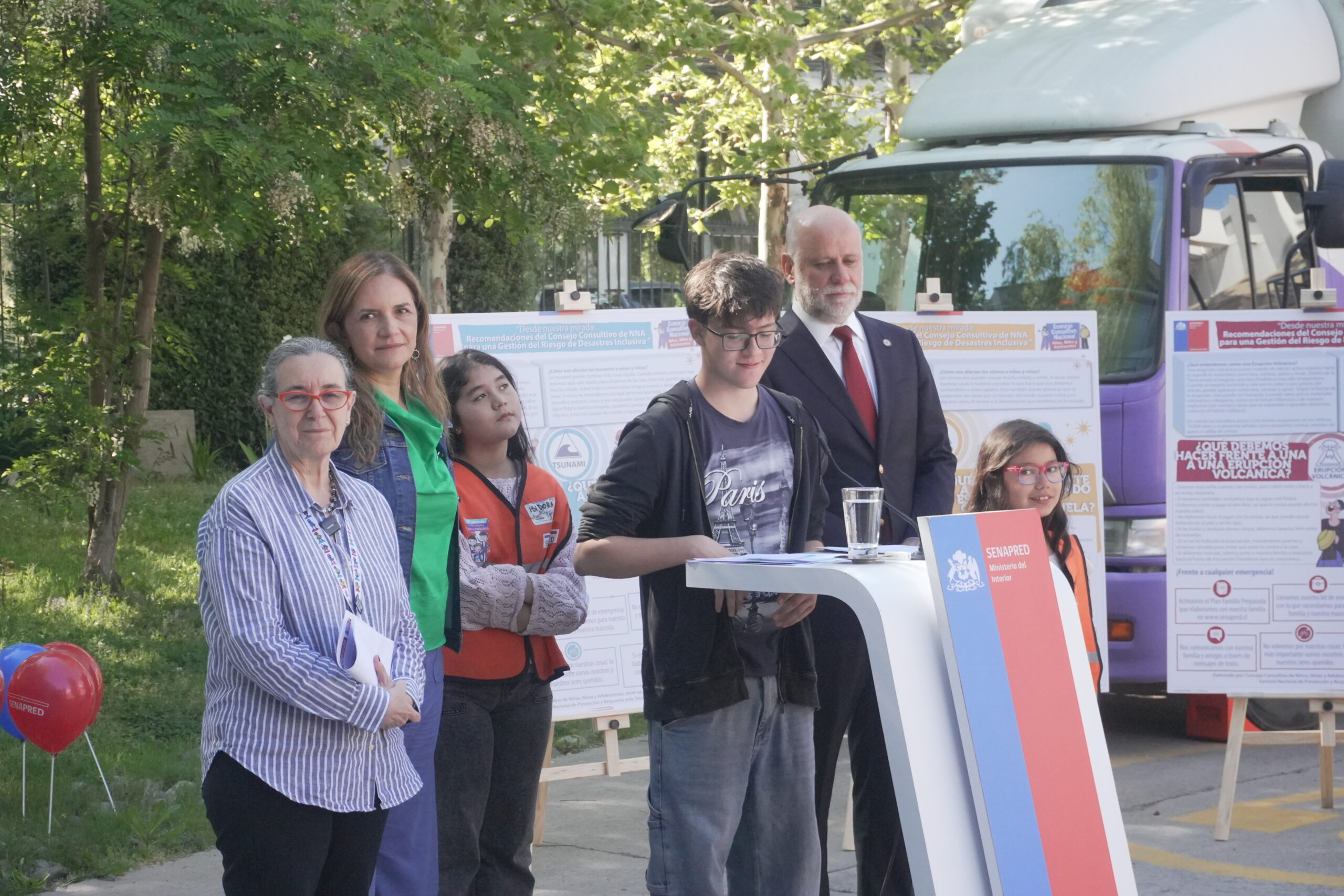 La actividad, enmarcada en las celebraciones del Mes de la Reducción del Riesgo de Desastres, contó con la participación del Ministro del Interior, Álvaro Elizalde; la Subsecretaria de la Niñez, Verónica Silva; la Directora Nacional de SENAPRED, Alicia Cebrián y Joaquín Jerez, integrante del Consejo Consultivo Nacional de Niños, Niñas y Adolescentes.