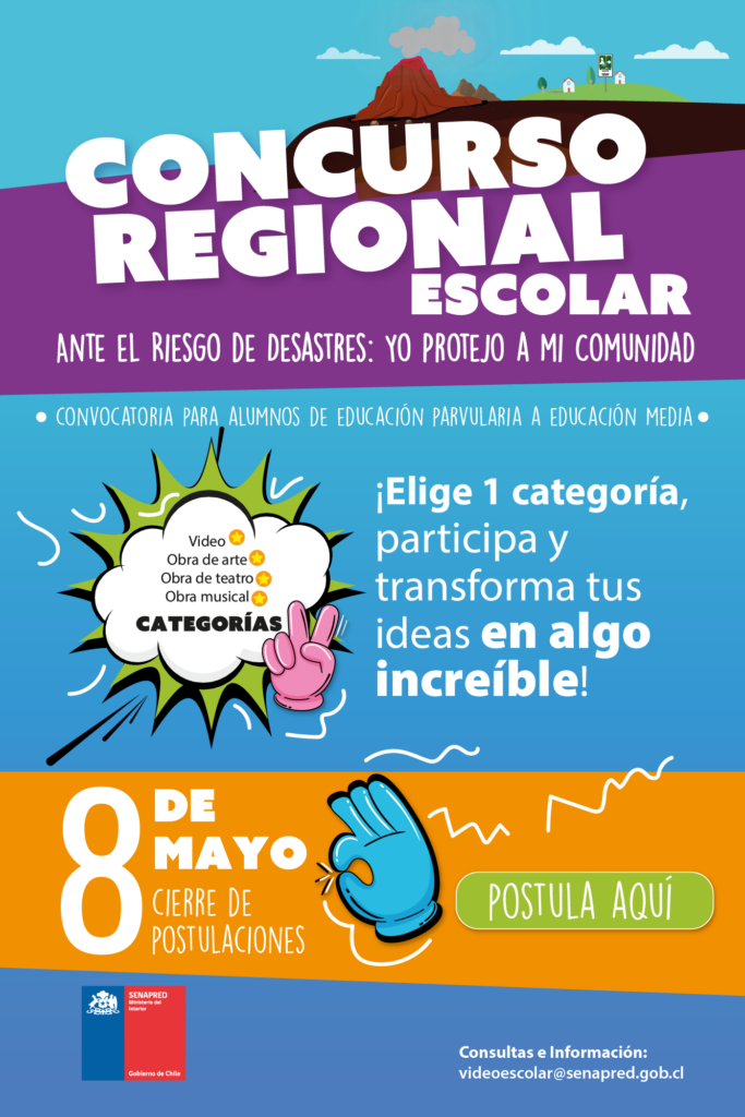 La Dirección Regional de SENAPRED La Araucanía realizará la tercera versión de su Concurso Regional Escolar “Ante el Riesgo de Desastres: Yo protejo a mi comunidad”. Se trata de una iniciativa que busca que niños, niñas y adolescentes la región se conviertan en miembros activos de la Reducción del Riesgo de Desastres en sus localidades y comunas.