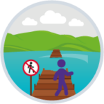 Si estás en un sector cercano a ríos, quebradas, canales, lagos o lagunas, ante una crecida o desborde del nivel del agua aléjate hacia zonas de mayor altura y lejos del peligro.