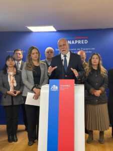 Jueves 17 de Julio de 2025.- El ministro del Interior, Álvaro Elizalde, junto a la Directora del Servicio Nacional de