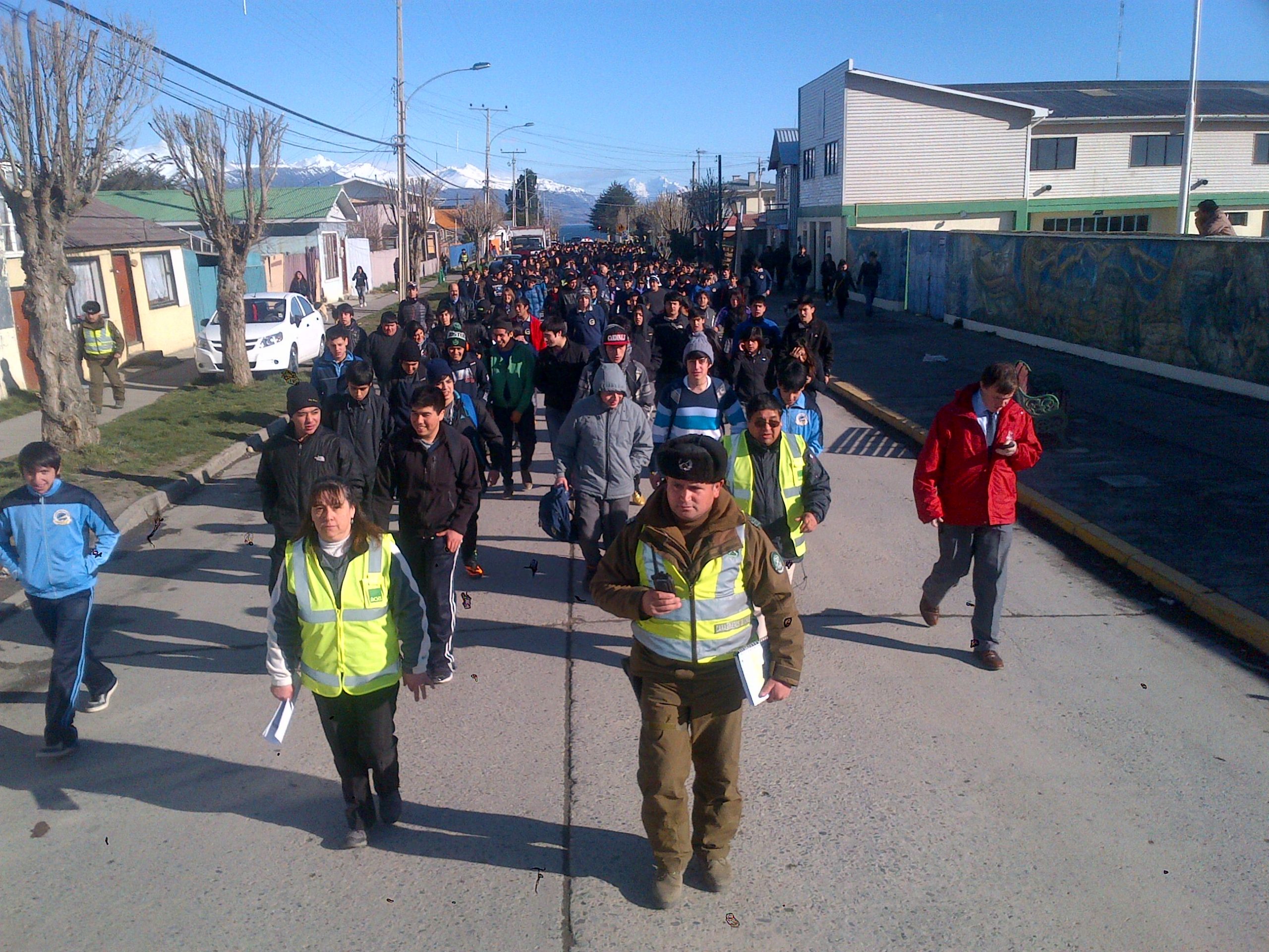 En ese momento, 108 establecimientos de la Región de Magallanes y la Antártica Chilena, aplicaron sus planes de emergencia dirigiéndose a sus puntos de encuentro, previamente establecidos en el Plan Integral de Seguridad Escolar.