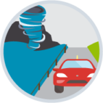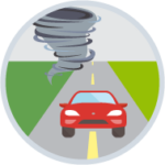 Si te movilizas en vehículo y ves un tornado en las cercanías, aléjate y busca refugio. El desplazamiento de un tornado es incierto.