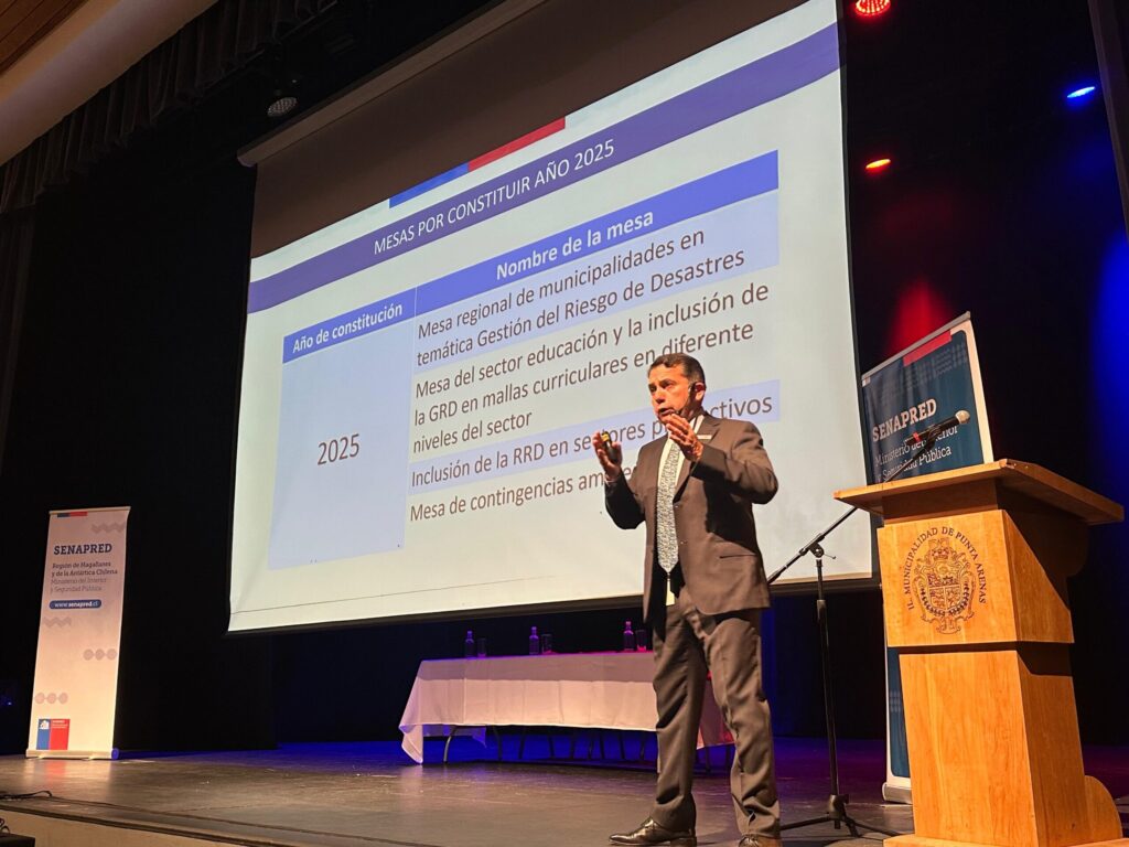 Por su parte, el director regional de SENAPRED expuso sobre “la Reducción del Riesgo de Desastres y la Adaptación al Cambio Climático y su necesaria sinergia”, en donde señaló la importancia de la descentralización como política de Estado, destacando el lanzamiento del diálogo ciudadano que promueve el Ministerio de Medio Ambiente, precisamente en la Región de Magallanes y la Antártica Chilena.