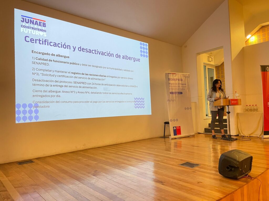 Respecto a la jornada, la directora Nacional de SENAPRED, Alicia Cebrián, señaló que “hemos entregado a los municipios de la Región de O’Higgins un instrumento de apoyo a la gestión frente a la necesidad de habilitar un albergue durante una emergencia. En este instrumento, efectuado bajo estándares internacionales que se trabajan para la ayuda humanitaria, se detallan las condiciones que deben cumplir para otorgar una buena habitabilidad a las personas damnificadas, porque nuestra principal preocupación es que esas personas tengan una respuesta adecuada con los cuidados necesarios en el periodo transitorio en que deban habitar en un albergue”.