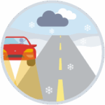 Utiliza cadenas, enciende las luces y neblineros. Evita la conducción durante la noche.