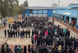Con el sonar de campanas y timbres a las 11:00 horas de hoy, alumnos, profesores, asistentes de la educación, familias